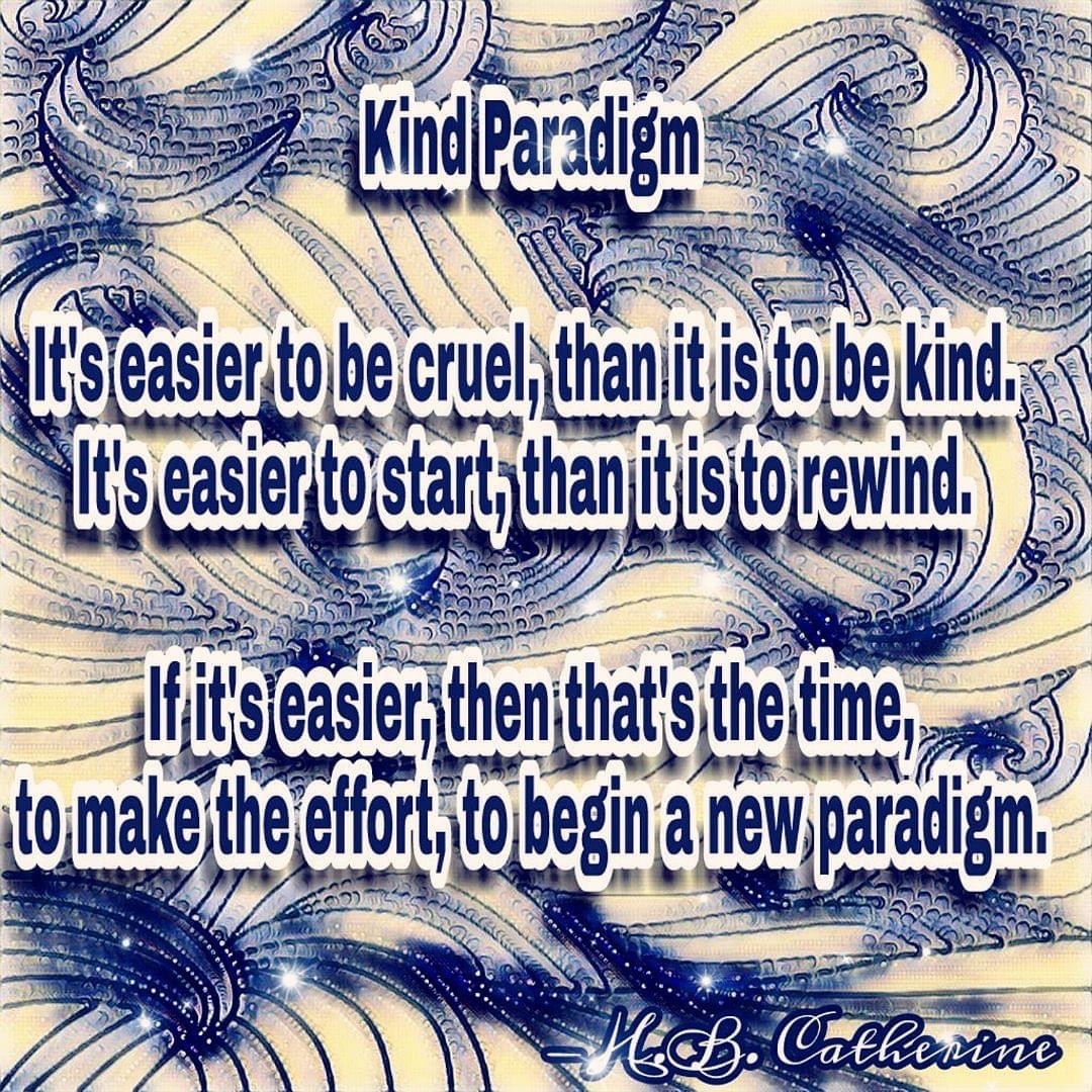Kind Paradigm Posted byhbcatherineMarch 17, 2022March 15, 2022Posted inBlogTags:inspirational, Poetry, Stories, writing Share this: Click to share on X (Opens in new window) X Click to share on Facebook (Opens in new window) Facebook Like Loading... Related Published by hbcatherine Write on. View more posts