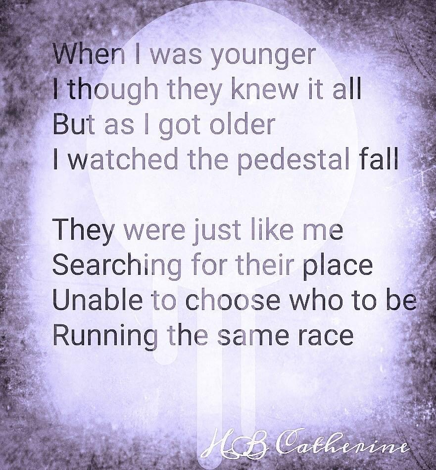 Running the Same Race Posted byhbcatherineMarch 19, 2022March 15, 2022Posted inBlogTags:inspirational, Poetry, Stories, writing Share this: Click to share on X (Opens in new window) X Click to share on Facebook (Opens in new window) Facebook Like Loading... Related Published by hbcatherine Write on. View more posts